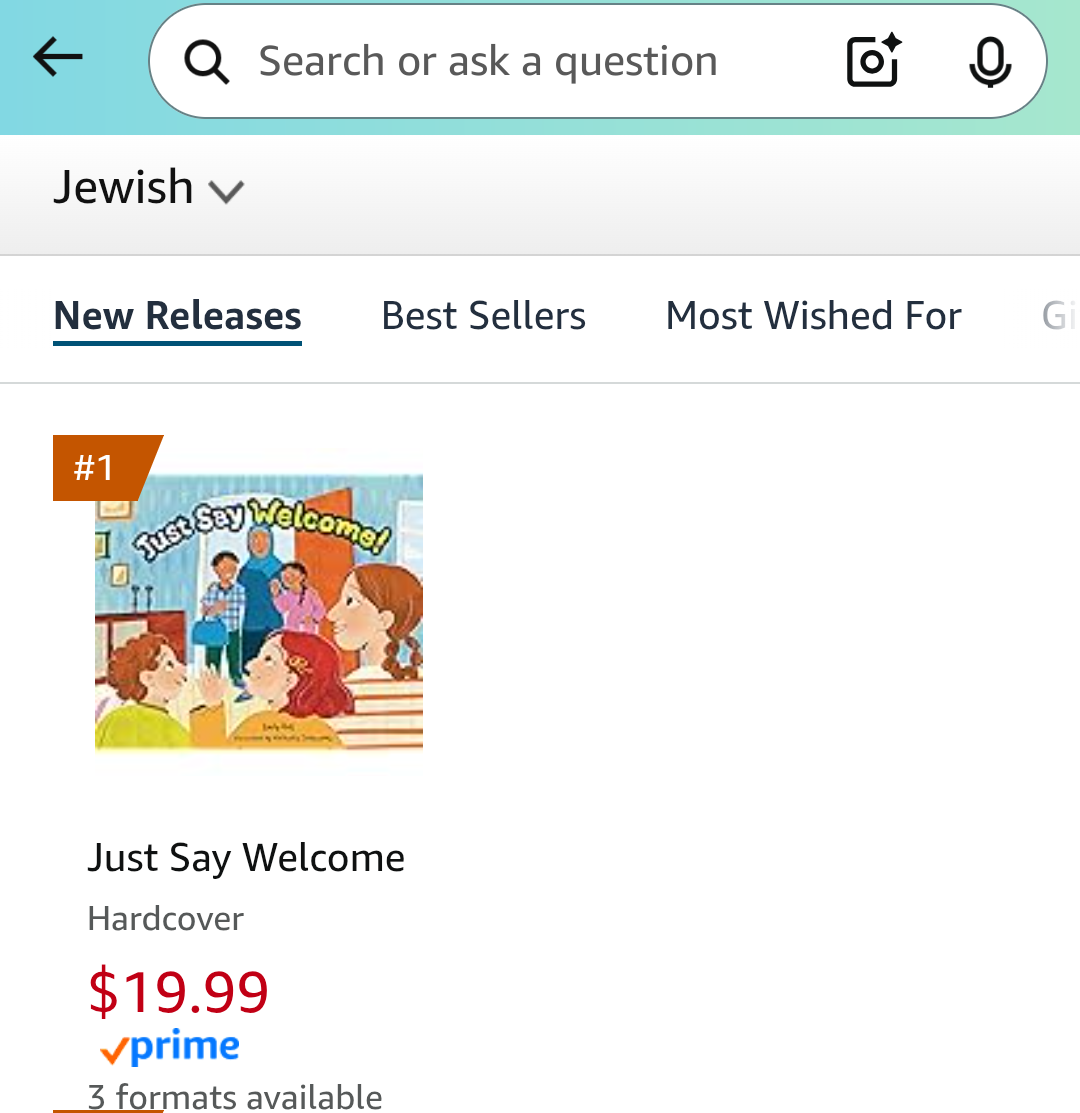 At the encouragement of my teenage daughter, I set up an Instagram account (I realize I’m late to the party on this) to help promote Just Say Welcome and encourage pre-orders. Well, she was right because just two days later, my book was ranked #1 on Amazon for new releases in Jewish children’s fiction books! I know these rankings change quickly, but for today, I’ll take the win! Thank you to everyone who has pre-ordered and supported me!